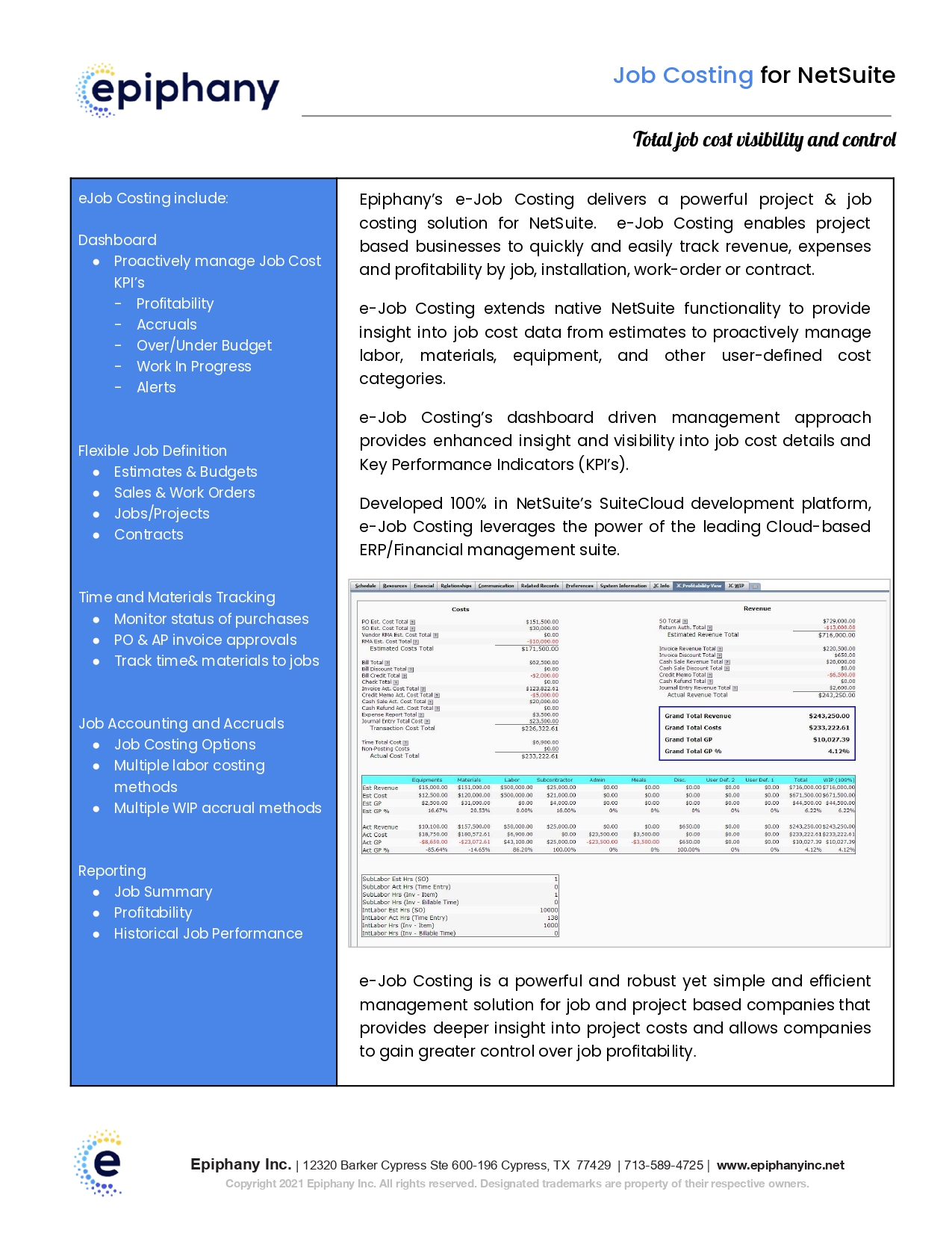 Because e-Job Costing is built entirely inside NetSuite, organizations benefit from: