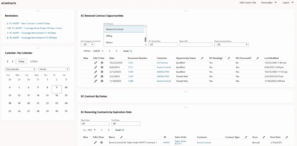 e-Contracts is a complete contract management solution for warranties, service contracts, software licenses, usage, entitlements, and renewals. Built 100% on SuiteCloud, it connects your customer service, support, accounting, and contract workflows into a single, integrated lifecycle โ ensuring every contract is profitable and nothing slips through the cracks.